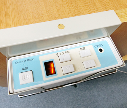 患者さまが横になりながらAM放送やFM放送、地域のコミュニティFM放送なども聞くことができます。